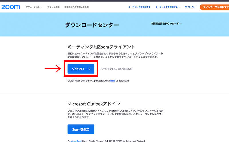 下記のURLをクリックして、「ミーティング用Zoomクライアント」をダウンロードしてください。(Windows, Mac両方とも)